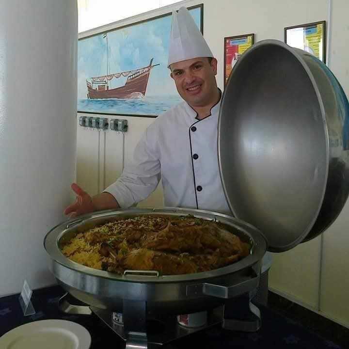 ـ لطهي الأرز : في إناء يناسب كمية الرز نضع كمية من الزيت والقرفة والهيل وحبوب الفلفل الأسود والقرنفل وورق الغار والليمون المجفف والبصلة الصغيرة المقطعة والثوم والزنجبيل ونحرك جيدا، و نضيف القليل من الماء المغلي والملح، ونضيف الأرز، ويغطى الإناء، و يترك حتى يمتص الأرز كل الماء، وينضج تماماً، و نضيف ماء الورد مع الزعفران.