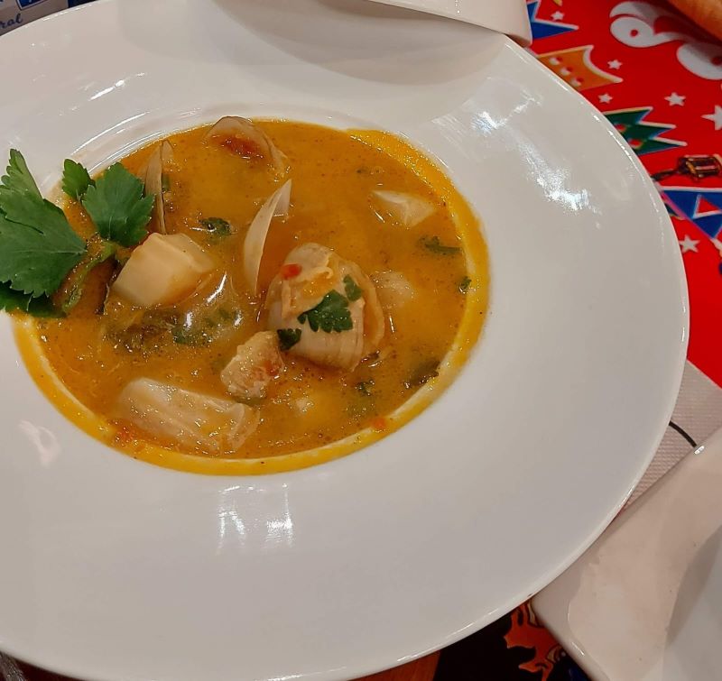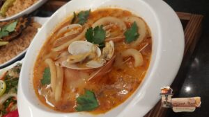 تقدم هذه الوصفة شيف أميرة حسن، وتقول :” شورة متبلة  بشكل رائع، وهي من أهم وصفات السي فود،  وتشكل وجبة غداء أنيقة تقدم مع الخبز الفرنسي الطازج أو في أجزاء صغيرة كطبق مقبلات رائع في حفل عشاء أو عزومة، قم بإعداد هذه الوجبة البسيطة عندما تشتهي شيئاً دافئاً وطازجاً، من دون أن يكون ثقيلاً جداً،  يمكن أن تشعر معظم الحساءات الكريمية أحيانًا بالثقل وتثقلك بعد الأكل،  ومع ذلك، يظل هذا الحساء مشرقاً وخفيفاً مع لمسة من صلصة الطماطم”.